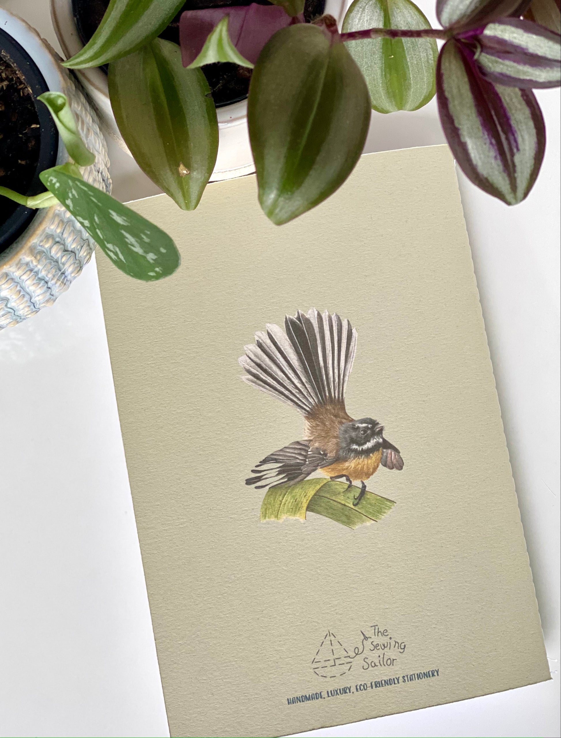 This notebook is handmade by me from my original watercolour paintings of a FANTAIL / PIWAKAWAKA bird from New Zealand.